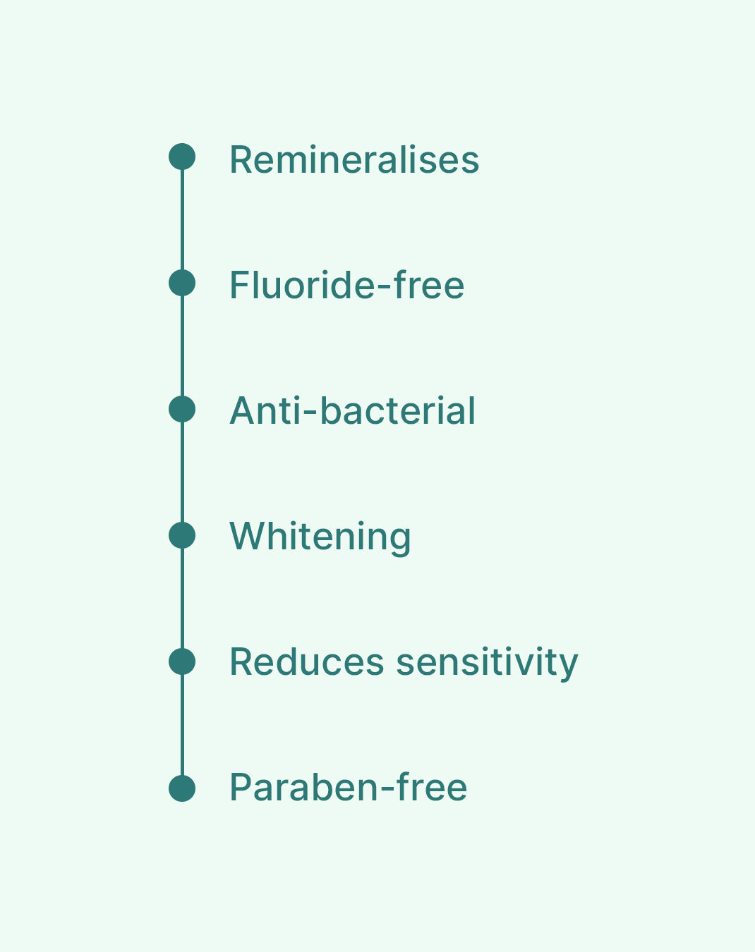 It's naturally restorative and effective in reducing your risk for tooth decay, cavities, and enamel erosion. It remineralises your teeth and even protects against sensitivity.